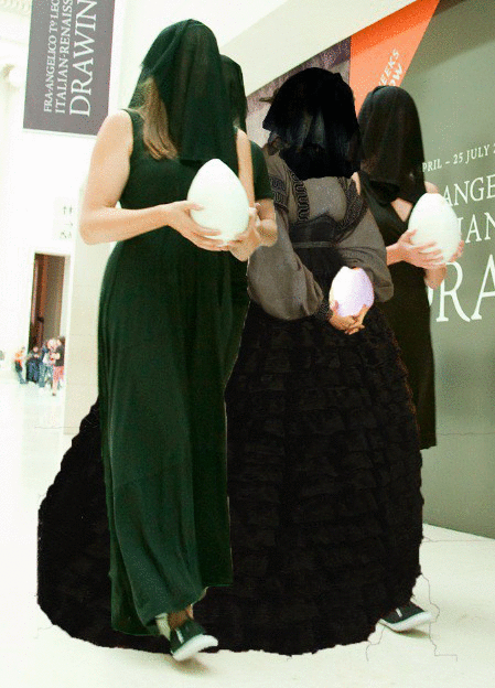 Liberate Tate – Parts Per MillionLiberate Tate – Liberate Tate’s most recent performance, Parts Per Million, involved 50 veiled performers dressed in black using the chronology of the BP Walk Through British Art to trace rising levels of atmospheric carbon up to the present day, during the re-opening of the re-furbished Tate Britain. See a film of the November 2013 performance here: